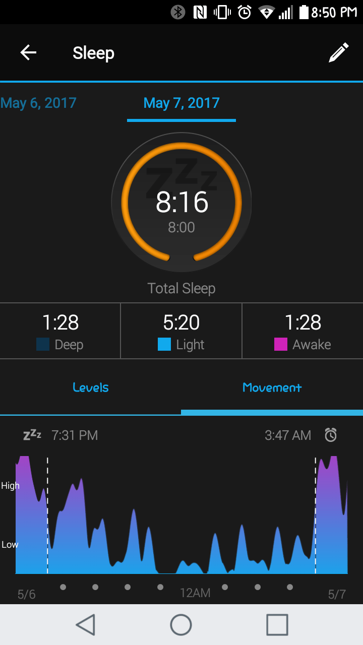 The night before last, I think I turned and tossed all night. I wear a step tracker that also tracks your sleep by tracking how much you are moving in the night. This was me on Saturday night