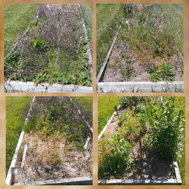 After much neglect, I finally made it to my raised beds at the community garden yesterday afternoon. The last time I was there was last fall. I could barely remember if I had cleared the beds or not. I soon learned that apparently I had not cleared the beds. Tbis is how they looked: