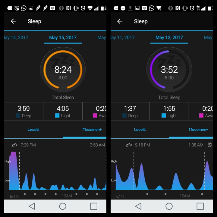 Compare these two sleep pictograms. The one on the right was on Day 1 when I barely slept and still had to work at 5am.