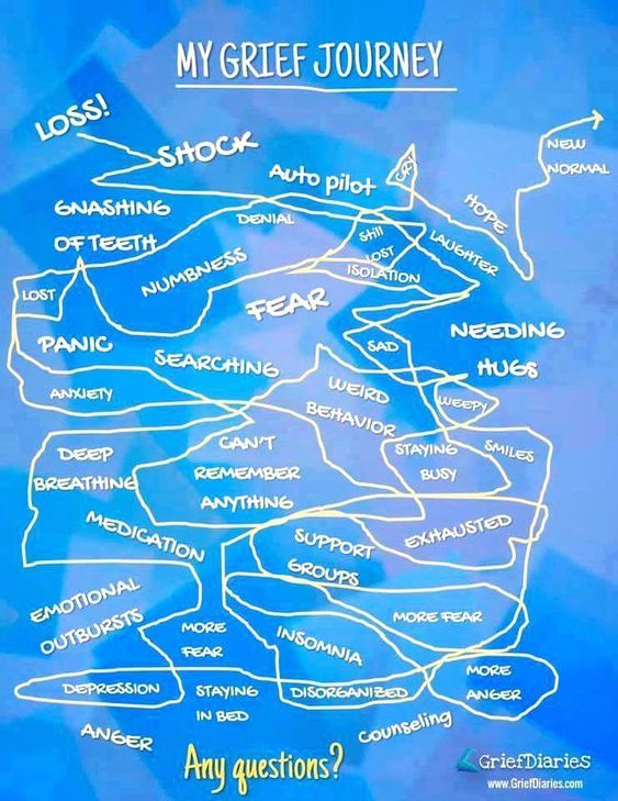 Actually the list is endless and all tangled up. I found an image from a fellow griever that I follow in Instagram that is sort of a pictograph for what grief is like